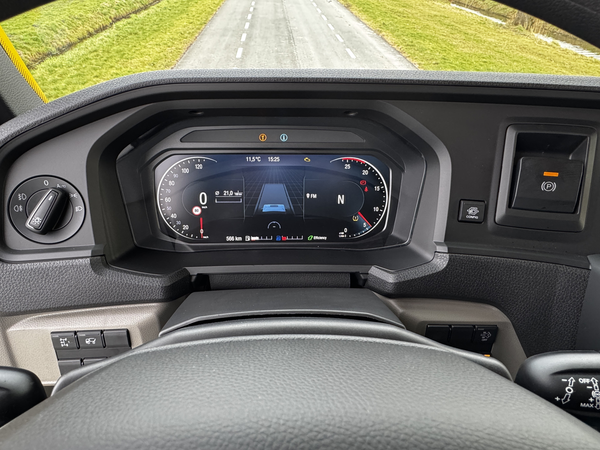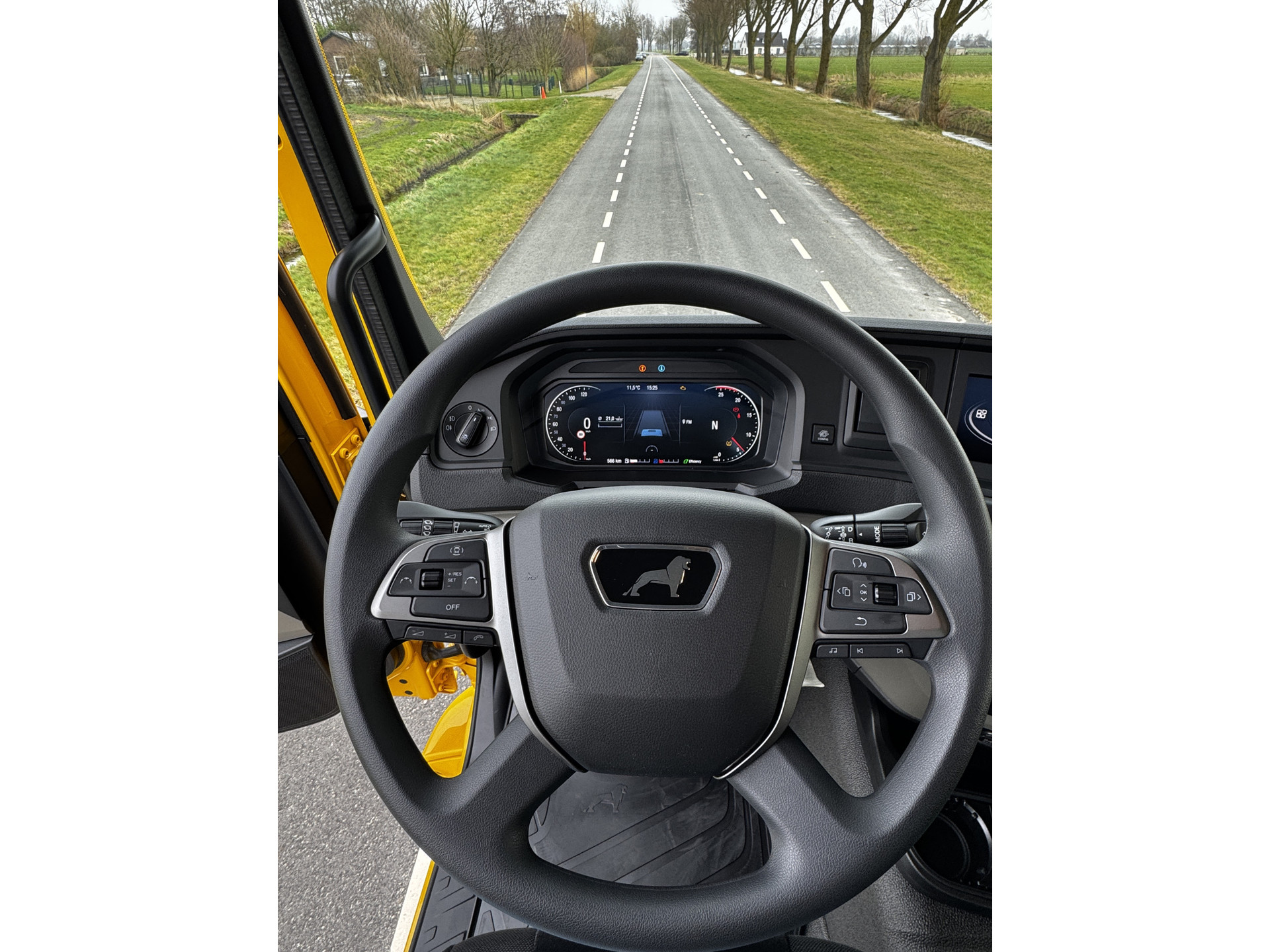 Uitvoering inclusief 3e stoel in de cabine, versnellingsbak PTO, korte wielbasis en 9.0T vooras.