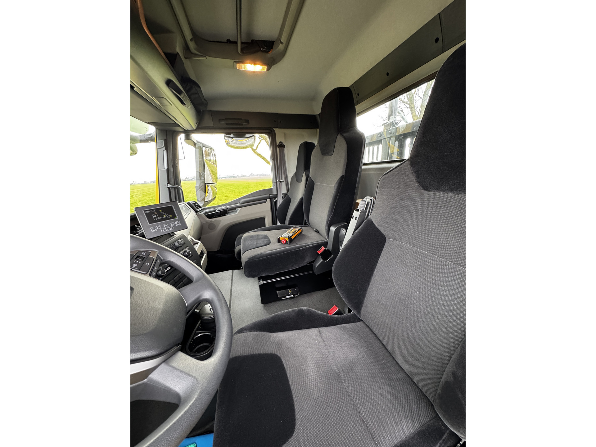 Uitvoering inclusief 3e stoel in de cabine, versnellingsbak PTO, korte wielbasis en 9.0T vooras.